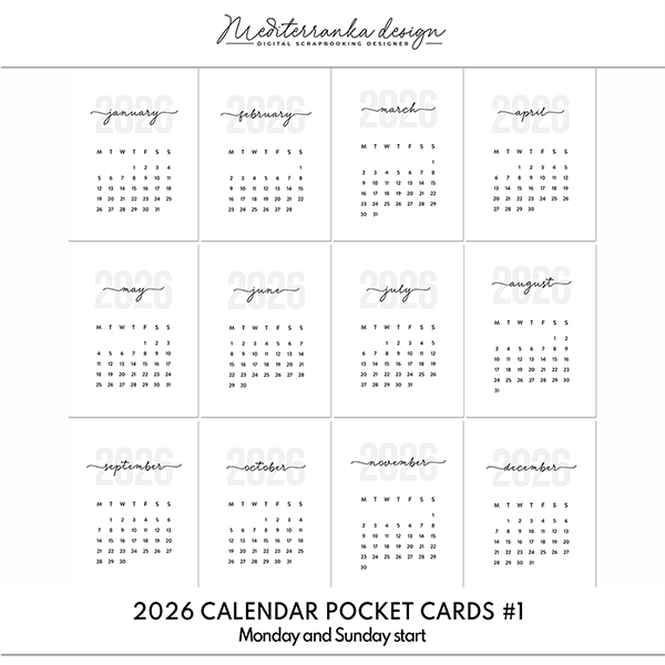 2026 monthly calendar (Pocket cards) by Mediterranka Design