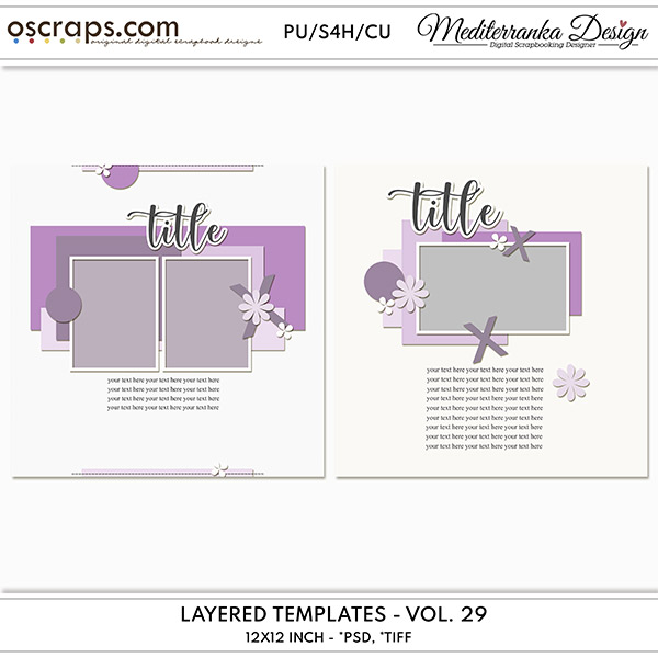 This pack contains 2 layered 12x12 inch digital scrapbooking templates in *.psd and *.tiff file formats at 300 dpi.